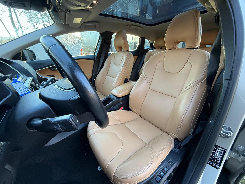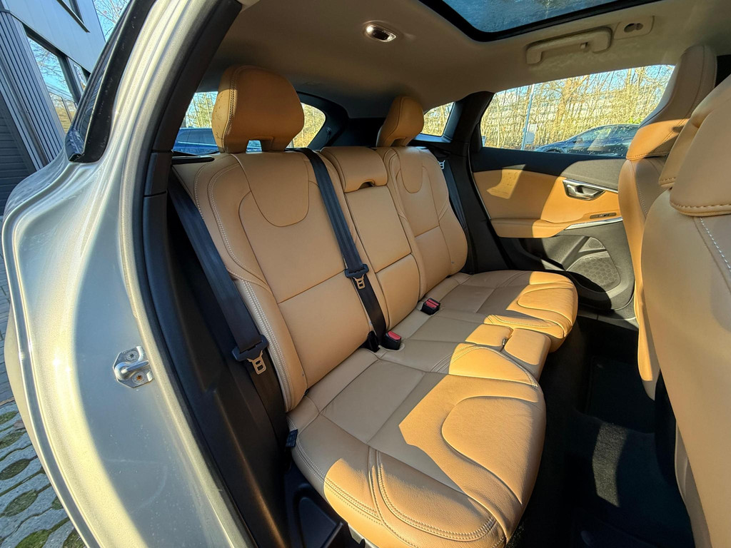 Uitgevoerd in Luminous Sand metallic met een stijlvol leren interieur en voorzien van onder andere een panoramisch glazen dak, LED-koplampen met adaptieve bochtverlichting, Sensus navigatie, achteruitrijcamera, parkeersensoren voor en achter en Keyless Drive. Daarnaast beschikt deze Volvo over uitgebreide veiligheidssystemen zoals Adaptieve Cruise Control, Blind Spot Monitoring en Collision Warning met automatisch remmen.